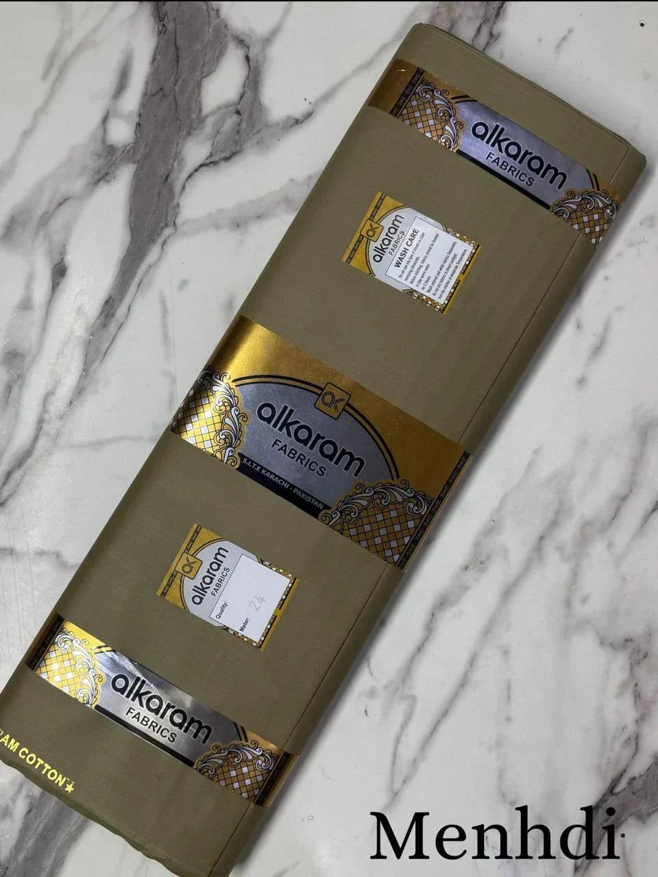 Description: Reflect pure grace with Al Karamcotton fabric- a premium class pure cotton blend made of 100% breathable fabric. It gives off a slightly silky textured finish to make you look elegantly sophisticated as you get it styled for the summer season.
